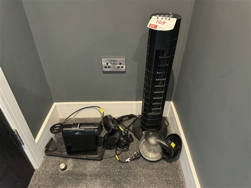 Assorted hotel appliances including Nespresso Coffee machine, one Ansio tower fan, one hotel safe & one Broomhill room diffuser (Broomhill Number 2, ‘Kimono’ - Japanese Plum)