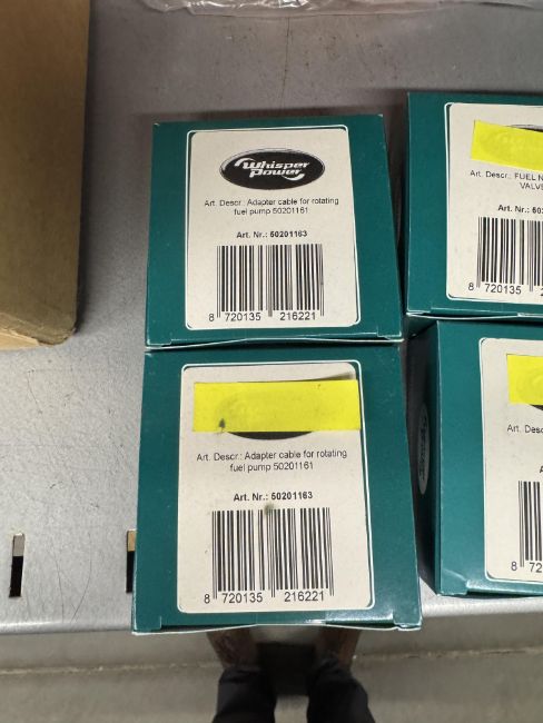 Two Whisper Power fuel non returns valves & two Whisper Power adapter cables for rotating fuel pump, 50201161 (boxed)