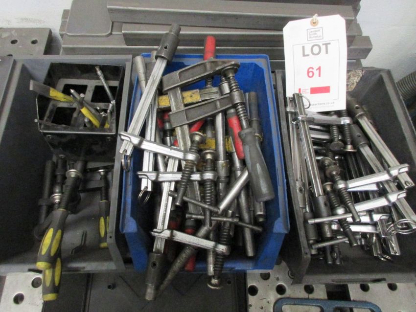 Miscellaneous lot including clamps, Vernier, machine vice 4", etc.