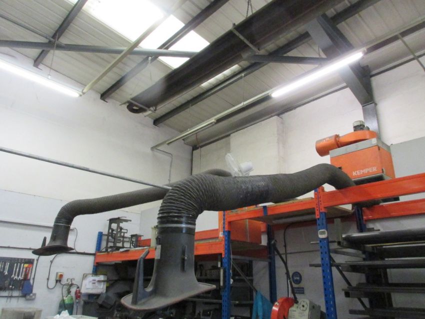 Kemper wall mounted fume extractor with two flexihose exhaust arms