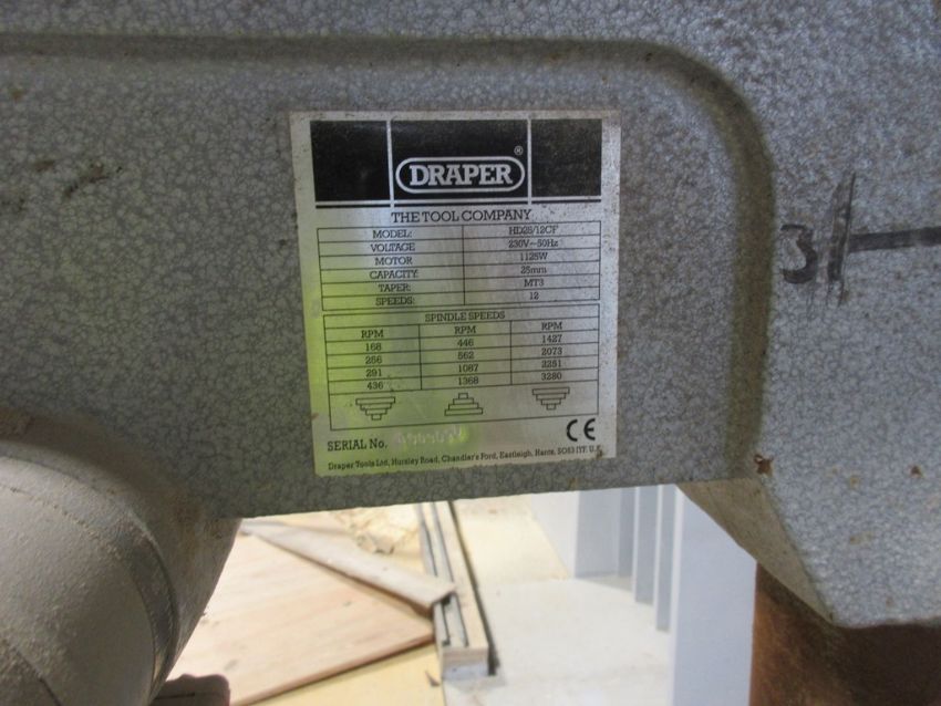 Draper HD25/2CF pillar drill, serial no. 0605070 with rise & fall table