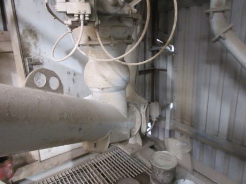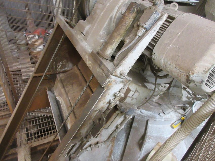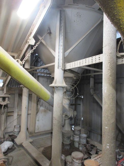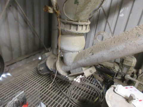 Teka TP2 500 mixer with Teka Bebbo skip hoist & controls to include: Teka TP2 500 mixer, approx. 1.6m dia x 1m depth, serial no. 60619 (2017), Teka Bebbo skip hoist elevating rail mounted tipping skip, approx. 1m x 1m, serial no. 60619 (2017), control cabinet - water tanks - safety fencing -mounted on steel frame/grated flooring, approx. 7m x 6m, forklift access point.