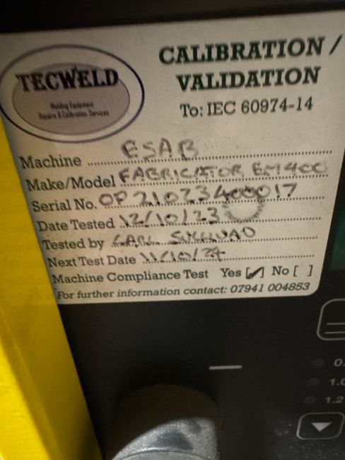 ESAB EM401i Fabricator with fabricator feed 304 s/n OP1102390314