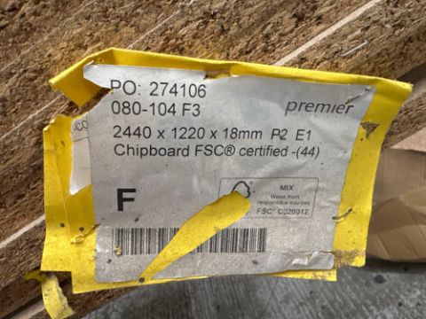 Ten sheets of 18mm and nine sheets of 15mm chipboard, sheet size 2440 x 1220mm