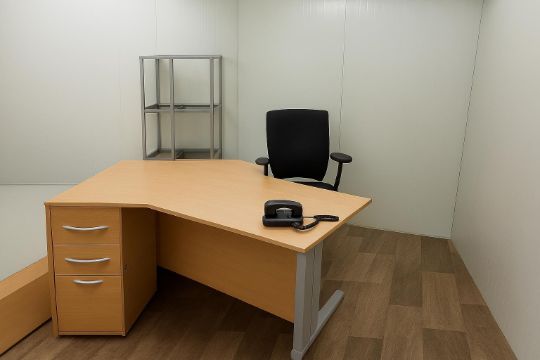 20 ft. x 7 ft. portable single-door site office with glazed windows, 240v electric outlets and lighting